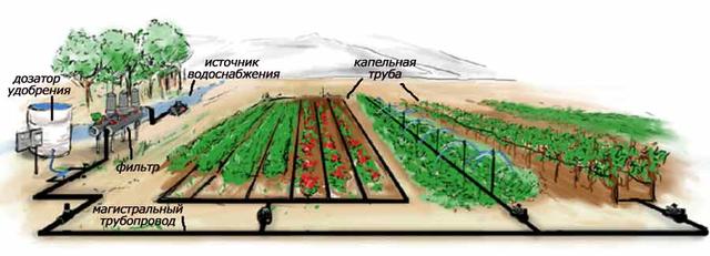 Капельное орошение - это способ полива, при котором очищенная вода и удобрения поступают через капельницу малыми дозами постоянно или в виде капель на поверхность почвы или же в саму почву (прикорневую зону растений). С каждым днем данный способ полива используется все чаще вследствие возможности проводить не только орошение, но и доставлять растениям питательные вещества, поддерживать влажность почвы в желаемых пределах, а также благодаря достижению высоких значений производительности при максимальной экономии воды.